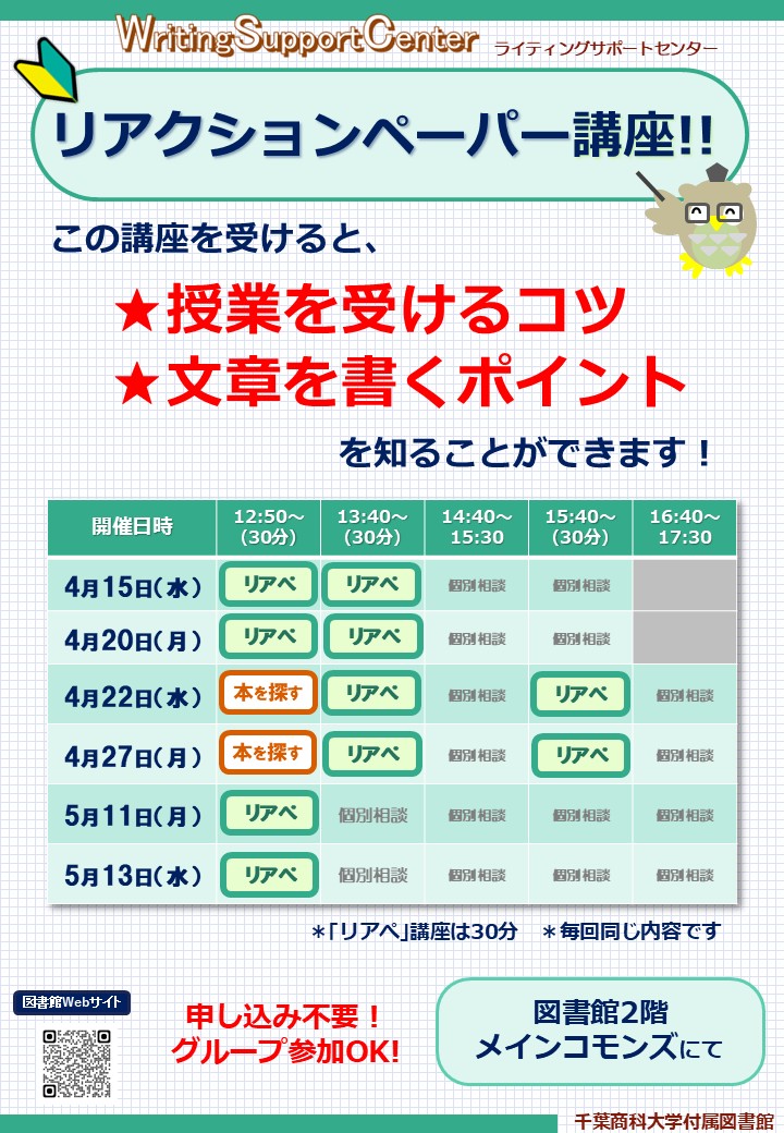 !新入生必見!WSC「リアクションペーパー講座」のお知らせ