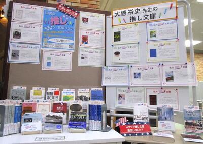 本格開催を前に「早出し!」として、大勝裕史先生の「推し文庫」を階段下で展示します。