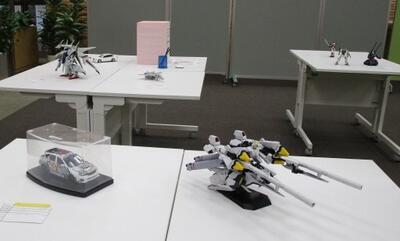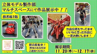 現在、学生サークル「立体モデル製作部」の作品展示をしています。