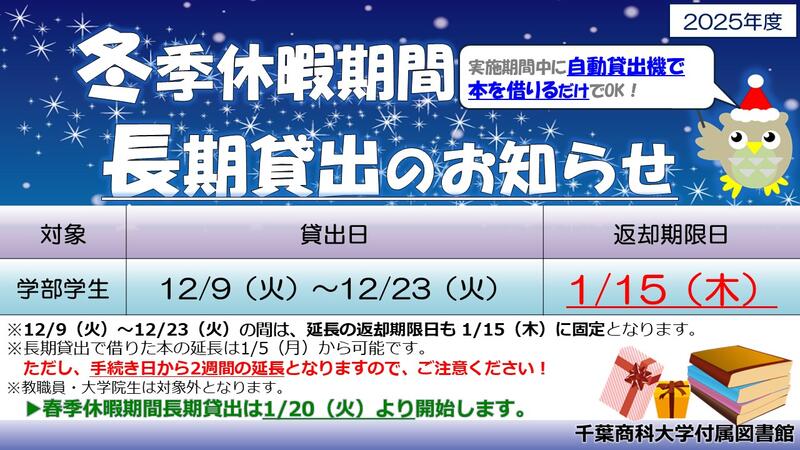 冬季休暇期間長期貸出のお知らせ