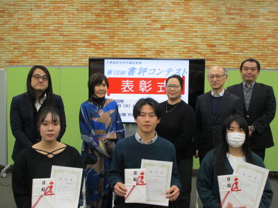 第10回書評コンテストは、以上の4人が受賞者となります。みなさんにとって書評を書き上げたことが書籍との新たな関わりの始まりとなり、さらなる学びのきっかけとなることを願っています。これからも幅広く書籍を読み、自分に当てはめ、自分自身の考え方や価値観を問い直す機会を多く持ってください。新たな知との出会いの場となるよう、図書館でお待ちしています。