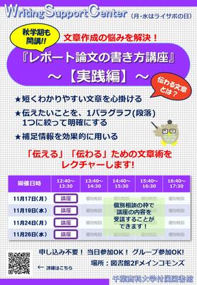 !学部生必見!WSC「レポート論文の書き方講座【実践編】」のお知らせ